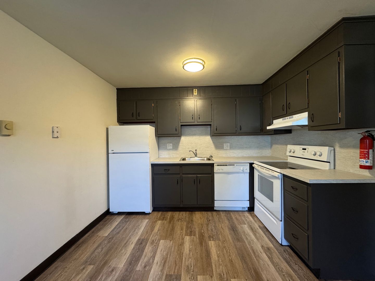 The complex includes coin-operated laundry in each building and one assigned off-street parking space.