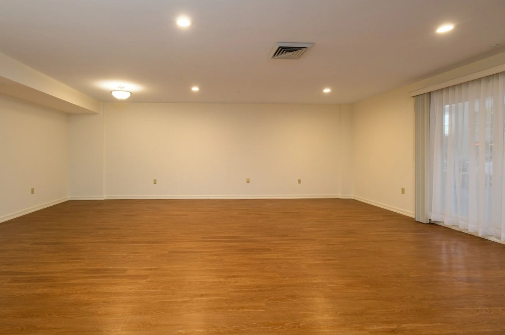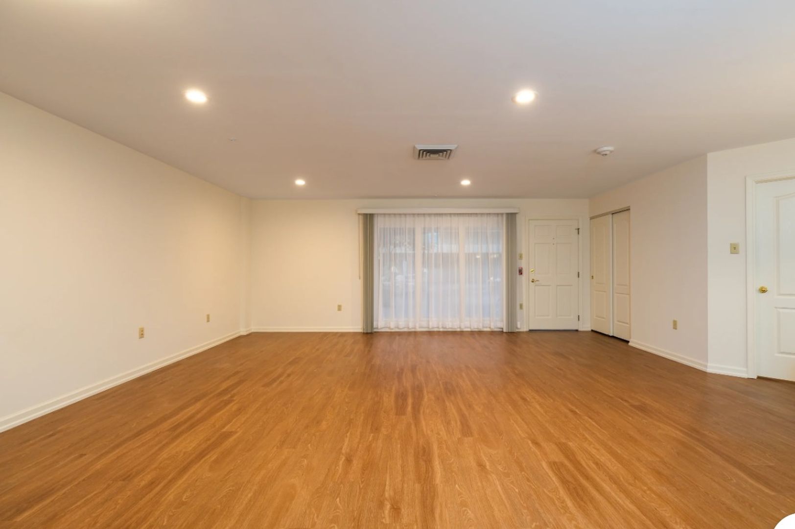 This spacious first-floor apartment features an open floor plan connecting the kitchen, dining, and living areas, perfect for comfortable living and entertaining.